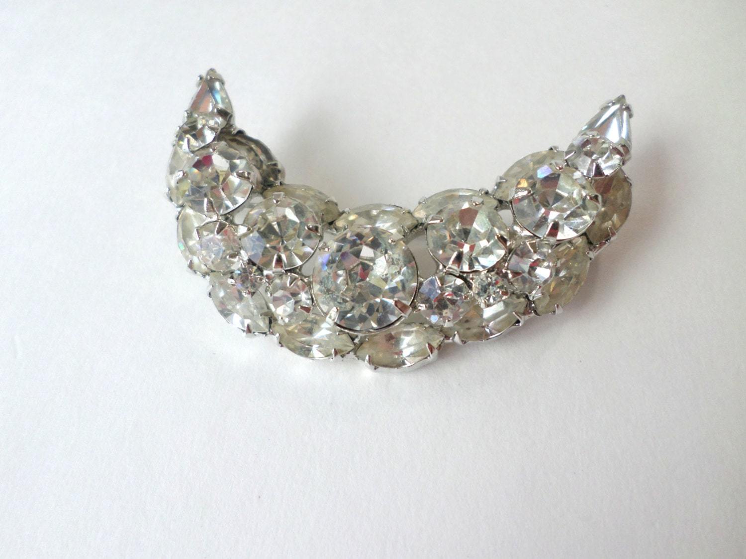 - Weiss Crescent Moon Rhinestone Brooch Pin, 1958-59
