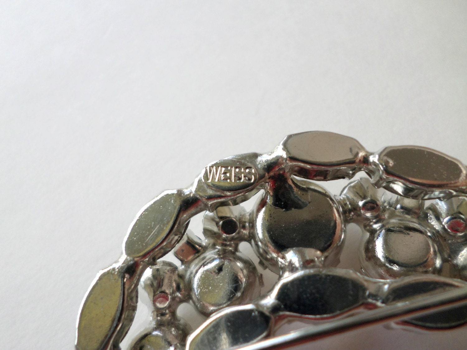 ?Materials: Swarovski prong held clear rhinestones, silver frame, classic roll clasp