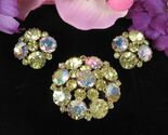 Primary image for WEISS Rhinestone EARRINGS & BROOCH Vintage SET Pin Clip On Yellow AB Goldtone