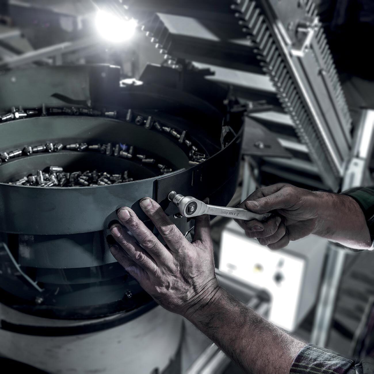 The Wera manual and machine socket (ISO 2725 part 3) can be used in manual and machine operations. With "Take it easy" tool finder with color coding by size - for quick and easy identification of the required tool. Slip-proof for easy grip even with oily hands. With ball stop groove. For external hexagon screws and bolts.