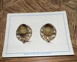 West Germany Brown Porphyry Glass Pearl Topaz Brass Filigree Clip on Earrings