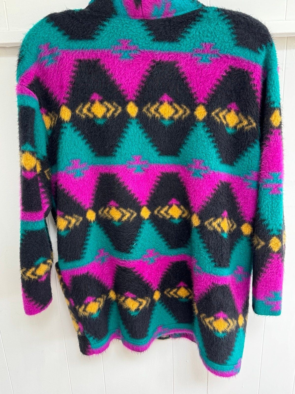 - Westbourne Southwest Aztec Boho Purple Fleece Blazer Cardigan Jacket Size L