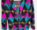 Vintage Village Fair Aztec Boho Purple One Button Pocket Cardigan Jacket Size L