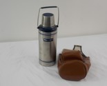 cool vintage western field thermos type bottle, its only seen light use very clean inside, includes a neat old carry satchel.