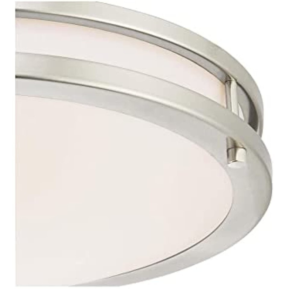 Brighten your space with this sleek and stylish, Lauderdale 15-3/4 In. dimmable LED flush mount ceiling fixture 6401200. This fixture adds a modern touch in any room while providing the most energy efficient illumination. The white acrylic shade provides soft, inviting light, while the two brushed nickel bands create a clean, contemporary look. This fixture features long-lasting, integrated LED technology with no bulbs to replace. Providing light output of 1900 lumens, the brightness of 1-100W incandescent bulb, this LED wall light consumes only 23W of energy, 77% less energy than an incandescent fixture. The Lauderdale is dimmable giving you the ability to adjust brightness and create the ambience you desire when used with a dimmer switch.