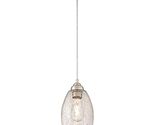 One-light Mini Pendant with hand blown clear crackle glass and Brushed Nickel finish makes a stunning addition