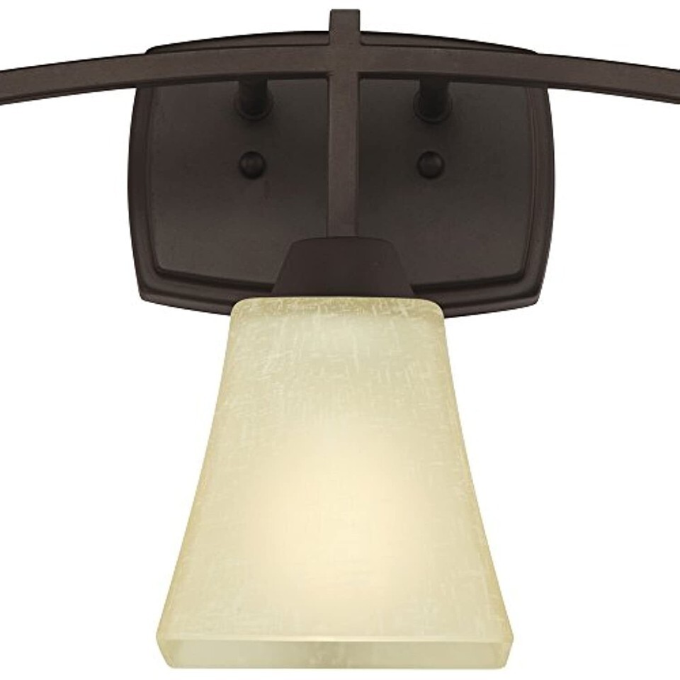 The clean lines of the Westinghouse midori three-light wall fixture are simple yet stunning. The amber linen glass shades suspend from the deep oil rubbed bronze arms, combining texture and a warm glow. Position the fixture up or down over a vanity in a bathroom for a luxurious touch. The fixture measures 10-1/8 inches high by 20-7/8 inches wide and extends 7-1/16 inches from the wall. It uses three medium-base light bulbs, 60-watt maximum (not included). this indoor fixture is both etc and cetl listed for safety and backed by a five-year manufacturer's warranty against defects in materials and workmanship. Westinghouse is a trusted, global brand. Westinghouse knows lighting and offers products with exceptional quality, reliability and functionality.