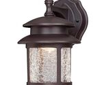 This energy efficient Westinghouse One-Light LED Outdoor Wall Lantern design is reminiscent of vintage lantern style lighting with a rich oil rubbed bronze finish. No bulbs to replace, this fixture includes integrated LED technology. Consumes only 9 watts, 75% less energy than an incandescent fixture, with the light output of 500 lumens which is equivalent to 1-60W or 2-25W incandescent bulbs. The curved crackle glass panels filters pleasant, gentle light. Mount this casual fixture beside your front or back door, on your porch, or on your garage for an attractive accent and reliable light source while saving money. The lantern is 9.75 by 6 inches (H x W), and it extends 7.88 inches from the wall. It is 2.83 inches high from the center of the outlet box. The back plate measures 5.38 by 4.38 inches (H x W). This Westinghouse lantern is ETL/CETL listed for safety and wet location. It is backed by a five-year limited warranty against defects in materials and workmanship. Westinghouse is a trusted, global brand. Westinghouse knows lighting and offers products with exceptional quality, reliability and functionality. Product reference number 64003.