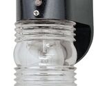 Light up your home with this Westinghouse One-Light Exterior Wall Lantern. With a simple jelly jar shape, black finish and clear glass, this piece has a versatile design that is compatible with a variety of home styles. The lantern also features a dusk to dawn sensor that conveniently turns the light on at nightfall and off at daybreak. Install it in an entryway or by your garage door. You can also use it to light up your deck area, patio, or balcony. Wherever you mount it, you will enjoy the lantern's ample light and understated style. The lantern is 6 by 4-1/2 Inch (H x D), it extends 5-3/4 Inch from the wall and it measures 2-1/2 Inch high from the center of the outlet box. The back plate measures 4-3/8 by 4-1/2 Inch (H x W). The fixture uses one medium-base light bulb, 60-watt maximum (not included). This Westinghouse lantern is Underwriters Laboratories listed for safety. It is backed by a five-year warranty against defects in materials and workmanship.