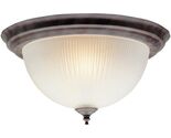 Product Description This lovely Westinghouse Two-Light Flush-Mount Interior Ceiling Fixture adds refinement to any interior space. Highlighted by a sienna finish, the base features a classic coved edge. The frosted ribbed glass and carved finial lend decorative flourish to the design. Install this fixture in your foyer, kitchen, or bedroom. The versatile flush-mount design makes it good for low ceilings as well as high ones. Wherever you mount it, you will enjoy the fixture's soft light and warm look. The fixture is 7-1/2 inches high by 13-1/4 inches in diameter. It uses two medium-base light bulbs, 60-watt maximum (not included). This Westinghouse interior ceiling fixture is Underwriters Laboratories listed for safety. It is backed by a five-year limited manufacturer's warranty against defects in materials and workmanship. Product reference number 67142. From the Manufacturer Frosted ribbed glass dome. 12-1/2" diameter x 7-1/2" height.