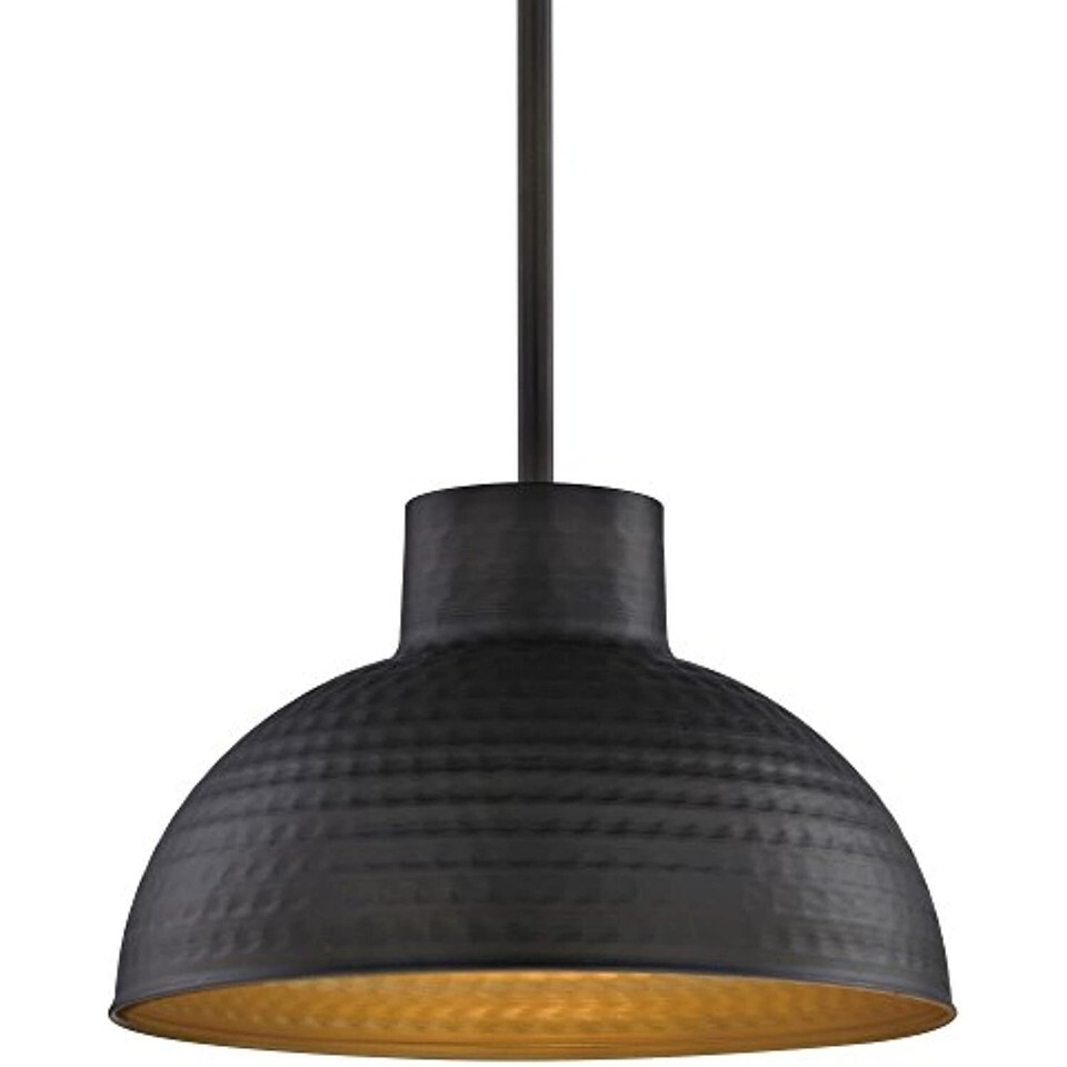 Industrial one-light Pendant with hammered Oil Rubbed Bronze finish, Gold finish inside shade directs light down perfect for tasks and ambience