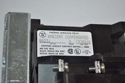 Westinghouse Thermal Overload Relay 3 POLE 30 AMP 600VAC Model#- BA23J Model B This is a nice Thermal Relay here. No visible defects or problems with this unit. Comes from working environment and may be company overstock. There is no mounting hardware for this....... there is also no instructions 600 VAC MAKE - 3600 VAC / 30 A BREAK - 360 VAC / 3 AMP This is Ambient Compensated Will ship international.