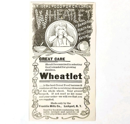Wheatlet Breakfast Franklin Mills 1897 Advertisement Victorian Cereal ADBN1A4