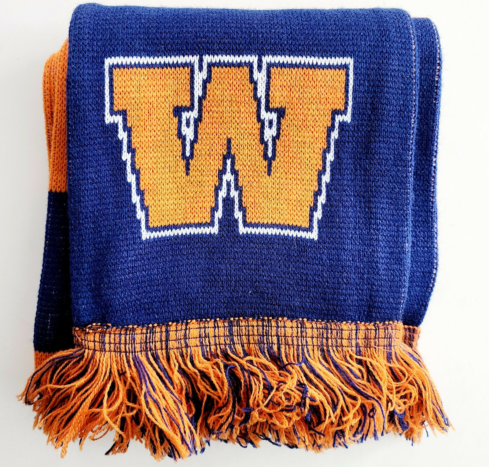 - Wheaton College Scarf Orange Blue Ruffneck Scarves LN 60" x 7" Mass BAGS1