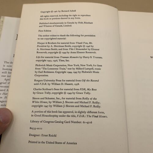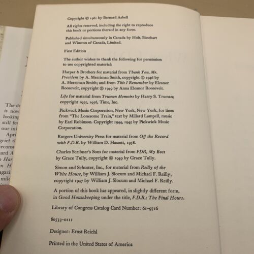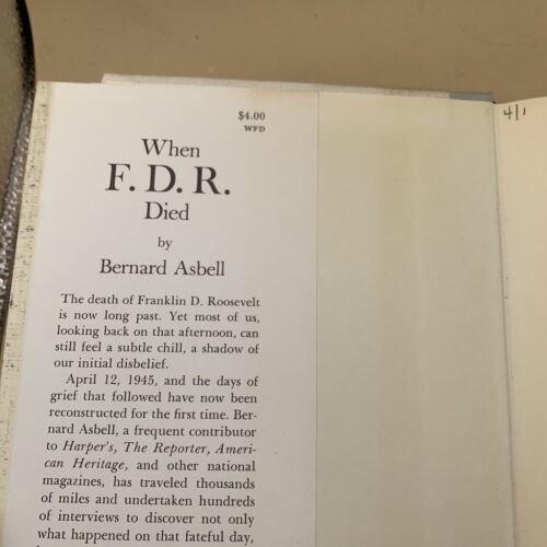 - When F.D.R. Died by Bernard Asbell First Edition HC/DJ