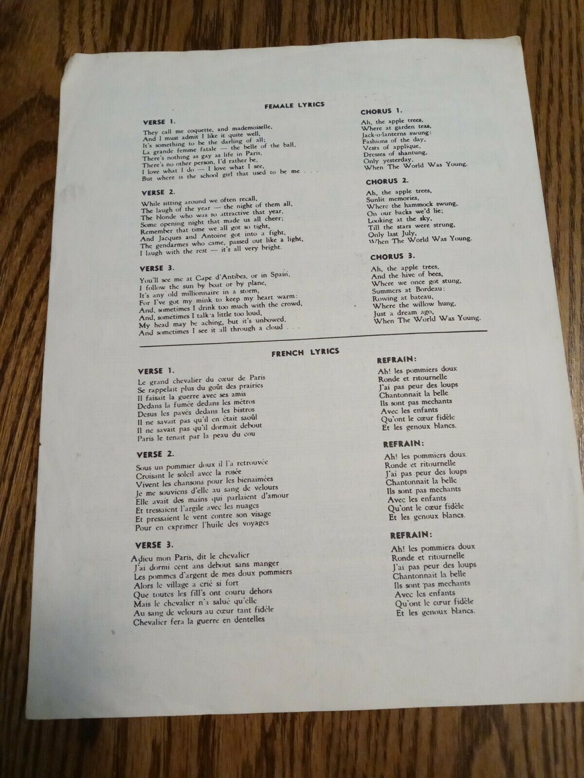 When The World Was Young Standard Edition Sheet Music. Condition is "Very Good". Shipped with USPS First Class.AUTHENTIC SHEET MUSIC FROM THE SHEET MUSIC PUBLISHER COLLECTIBLE - VINTAGE - VERY RARE FAST SHIPPING WITHIN 24 HOURS Packed By Our Award Winning Packaging And Shipping Department Long Time E-commerce Seller For Over 20 Years LIMITED AVAILABILITY Add Our Store To Your favorites list ! The sale is final and please do not ask for refunds, returns, changes or cancelations Condition: Used (This Is Vintage Old Rare Sheet Music With Wear,Tears,Creases ect Per Pictures Attached -See All The Enclosed Pictures For The Exact Condition) RARE VINTAGE COLLECTIBLE- SHIPS N 24 HOURS