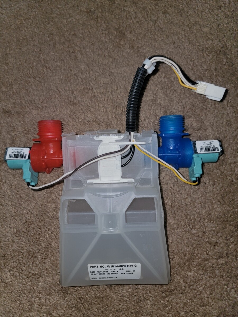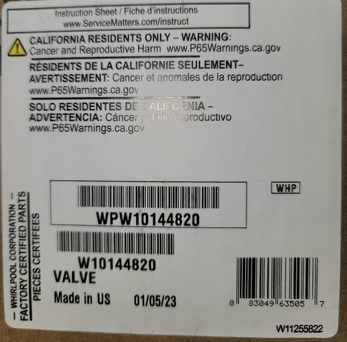 The Whirlpool Water Inlet Valve W10144820 is a replacement part specifically designed for Whirlpool washing machines. This valve is essential for supplying water to the washer during the wash cycle. With a model number of W10144820, this valve is compatible with select Whirlpool washer models, ensuring a proper fit and functionality. Made by the trusted brand Whirlpool, this water inlet valve guarantees quality and reliability for your appliance needs. Please chack compatibility before purchasing. This was purchased for Whirpool Washer (WTW5200VQ2) before realizing wash tube was damaged beyond repair. Seller not responsible of compatibility issues. NO RETURNS ACCEPTED!!