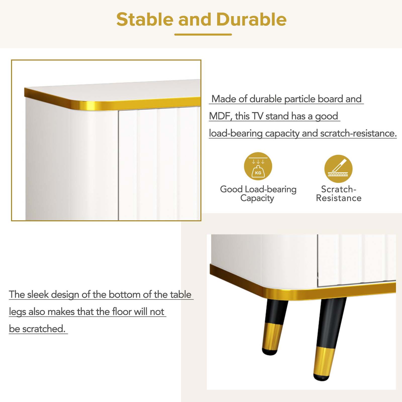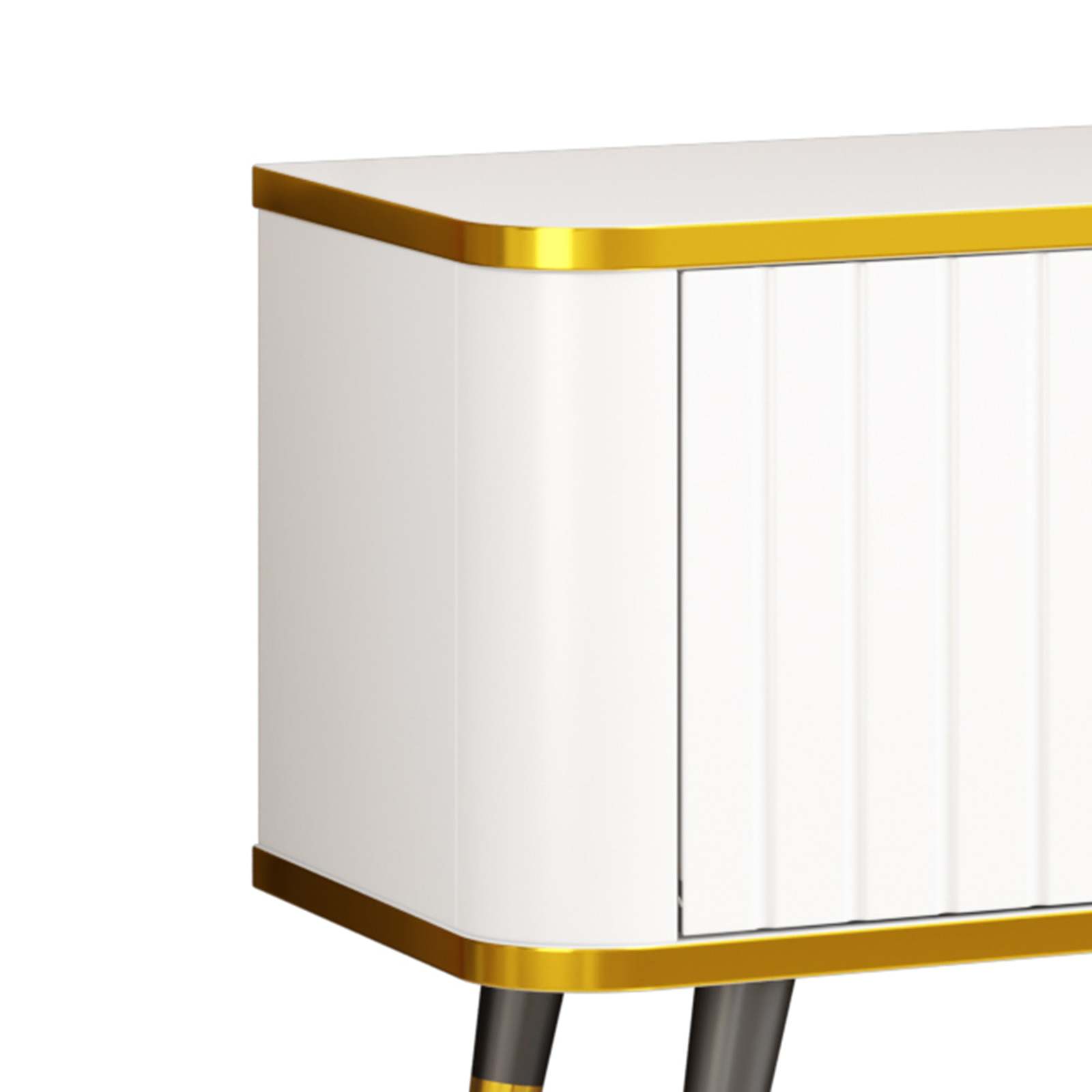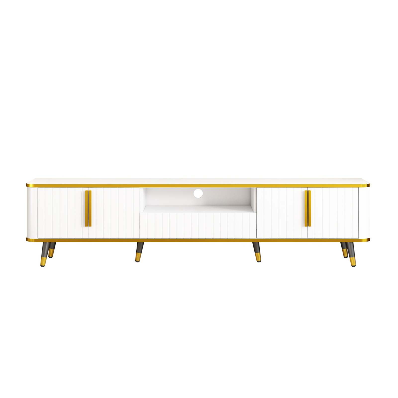 This TV cabinet integrates the simple line design and the embellishment of golden elements, not only showing the modern fashion style, but also exuding a hint of luxury and elegance.