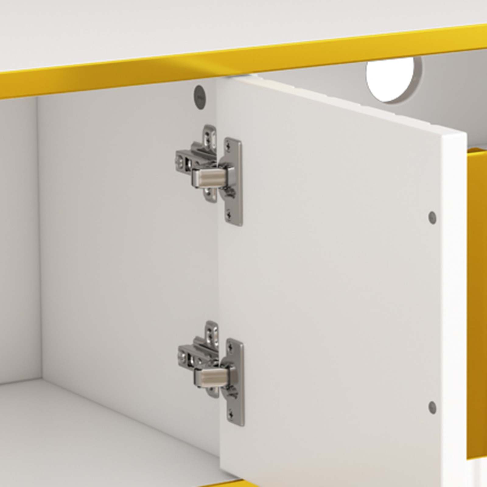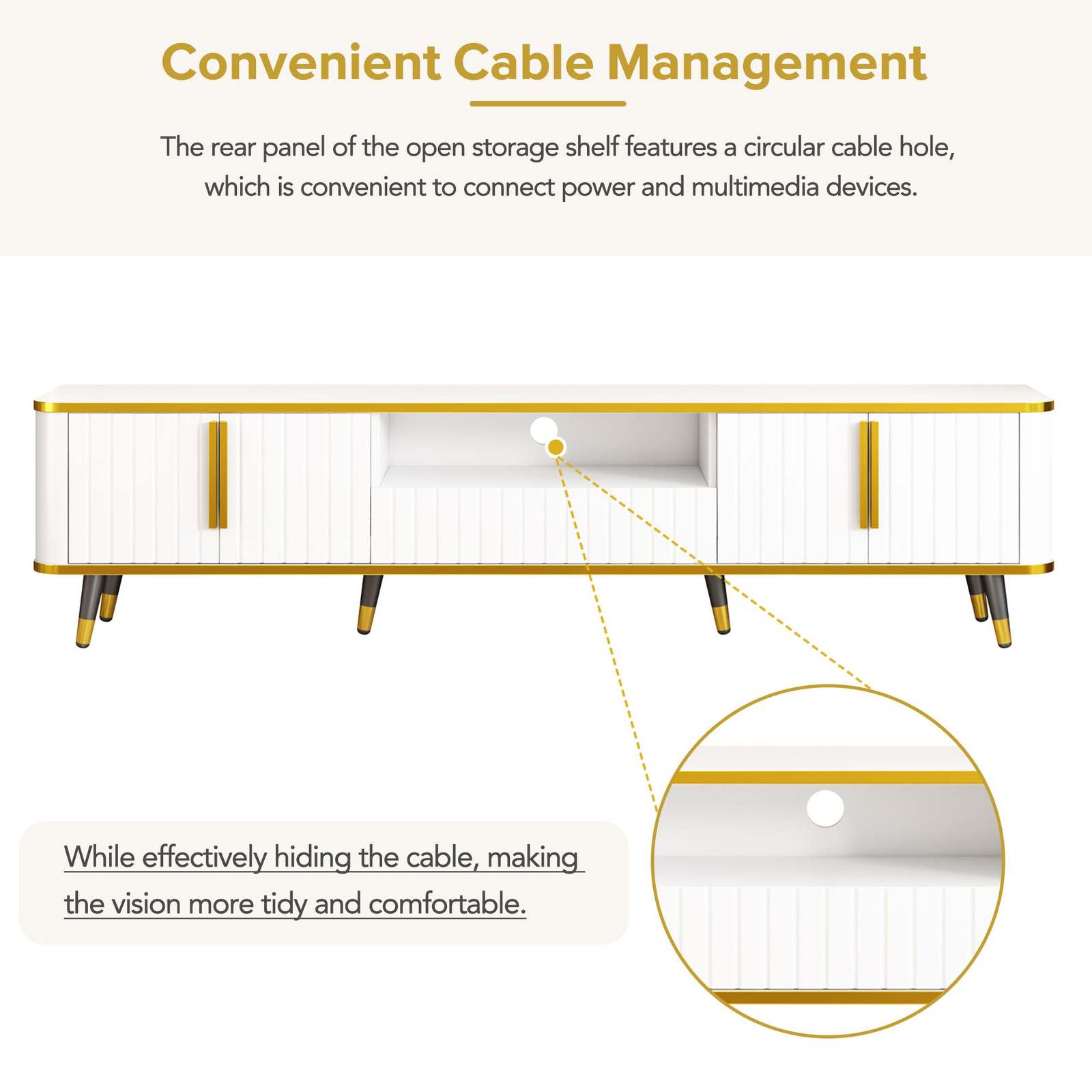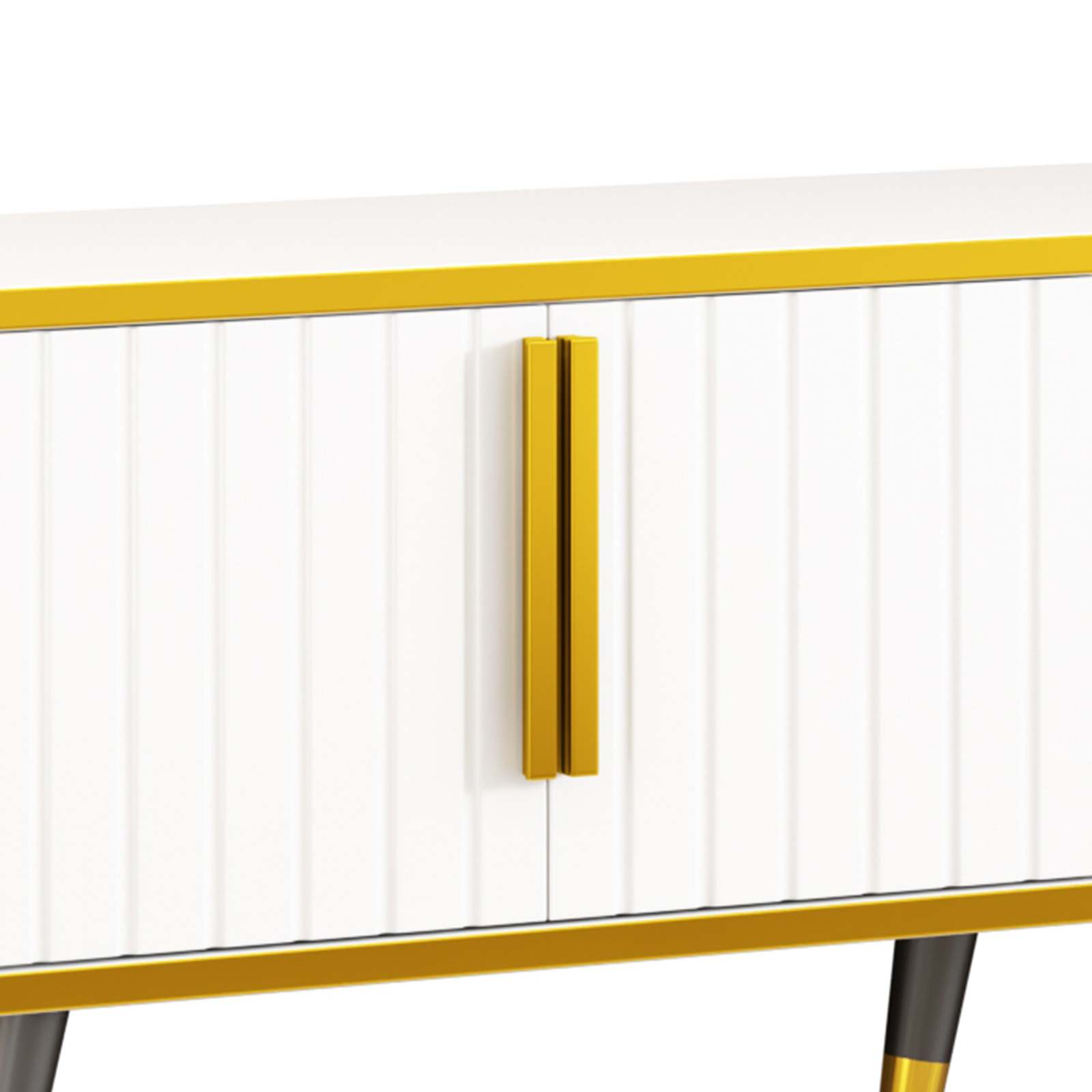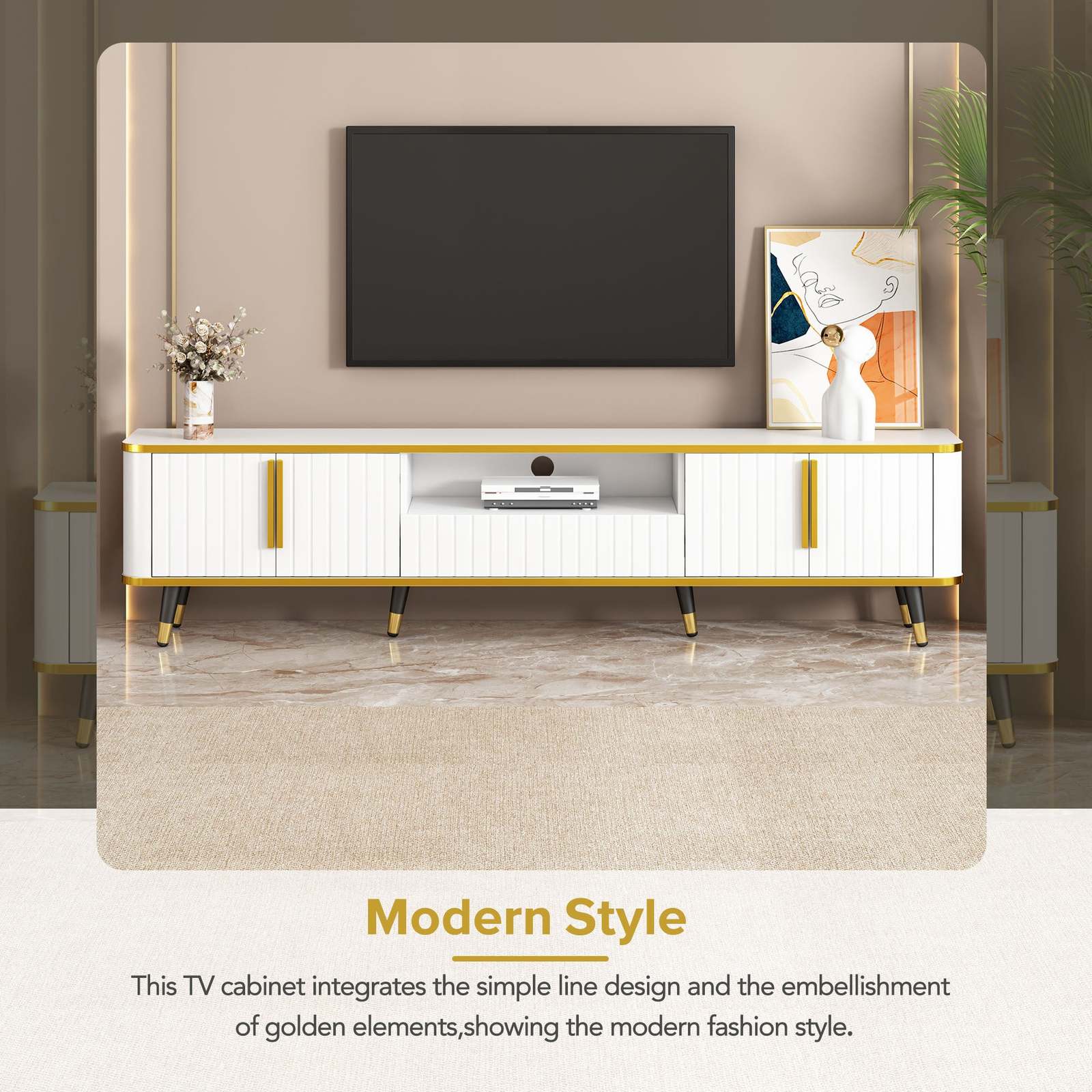 This TV cabinet integrates the simple line design and the embellishment of golden elements, not only showing the modern fashion style, but also exuding a hint of luxury and elegance.