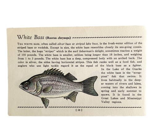 White Bass 1939 Fresh Water Fish Art Gordon Ertz Color Plate Print PCBG20