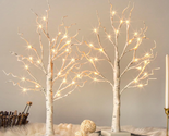 - White Birch Tree with LED Lights - Set of 2, Tabletop Tree with Timer, Christmas