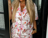 Pink Flower Print Short Sleeve Shirt Pajamas Set