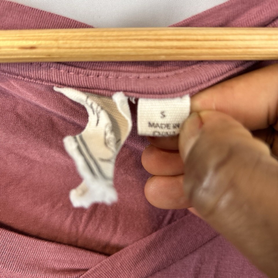 White Crow Women?s V-Neck T-Shirt Size Small Mauve Pink Pocket Tee Casual Soft