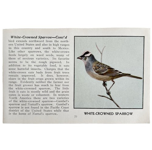White Crowned Sparrow Bird Print 1931 Blue Book Birds Of America Art PCBG13C