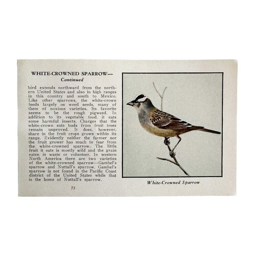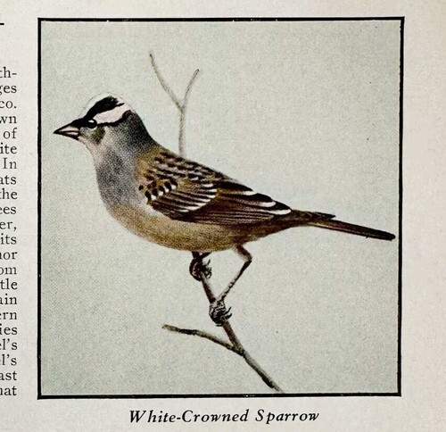 White Crowned Sparrow Bird Print 1931 Blue Book Birds Of America Art PCBG21B