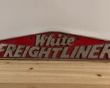White Freightliner Powerliner Hood Emblem Badge Red Chrome Original COE 1970?s Original vintage nose badge emblem for white freightliner semi trucks 1970?s I believe in great shape , see photos Great for man cave or garage ! See photos for condition more info below Rare Original 1970s Freightliner Powerliner Cabover Hood Emblem / Nose Badge This is the real deal ? factory-original cast metal Freightliner Powerliner emblem from the golden era of big-bore cabovers (approx. 1973?1979). Iconic red background with raised polished chrome/silver letters in that classic bold beveled font. Measures roughly 21?22 inches tall ? perfect for Powerliner, White-Freightliner COE, or high-hood WFT restoration projects. Condition: Good original survivor condition with honest patina (see photos). Red paint is still strong with some light chips and wear from decades on the road ? exactly what collectors want. Letters are bright and proud, no major pitting or damage. All four mounting holes intact ? ready to bolt on or display. These 1970s Powerliner badges almost never come up for sale in original form. Most you see today are cheap reproductions or badly repainted. This is an authentic piece of Freightliner history from the days of 600 hp Cummins KTA-600 and Detroit 12V-71 monsters! Perfect for: - Freightliner COE restoration (Powerliner, FLA, FLB) - Man cave / garage wall hanger - Semi truck memorabilia collectors Ships fast and carefully packaged. Message me with any questions ? thanks for looking Freightliner Powerliner, White Freightliner, cabover emblem, COE badge, vintage semi truck parts, 1970s Freightliner, big rig emblem, hood ornament, semi truck resto