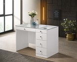 - White Glam Makeup Vanity Table, Glass Top, 5 Drawers Crystal Knobs