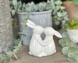 An adorable kissing bunny ornament with a glossy white finish. A simple yet sweet decorative accessory and gift item.