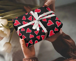 - White Lined Red Hearts on Black, Valentine wrapping paper, medium roll, romantic