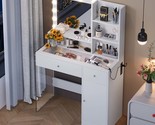 White Makeup Vanity Desk w/Mirror, 3 Light Modes, Glass Top & Storage