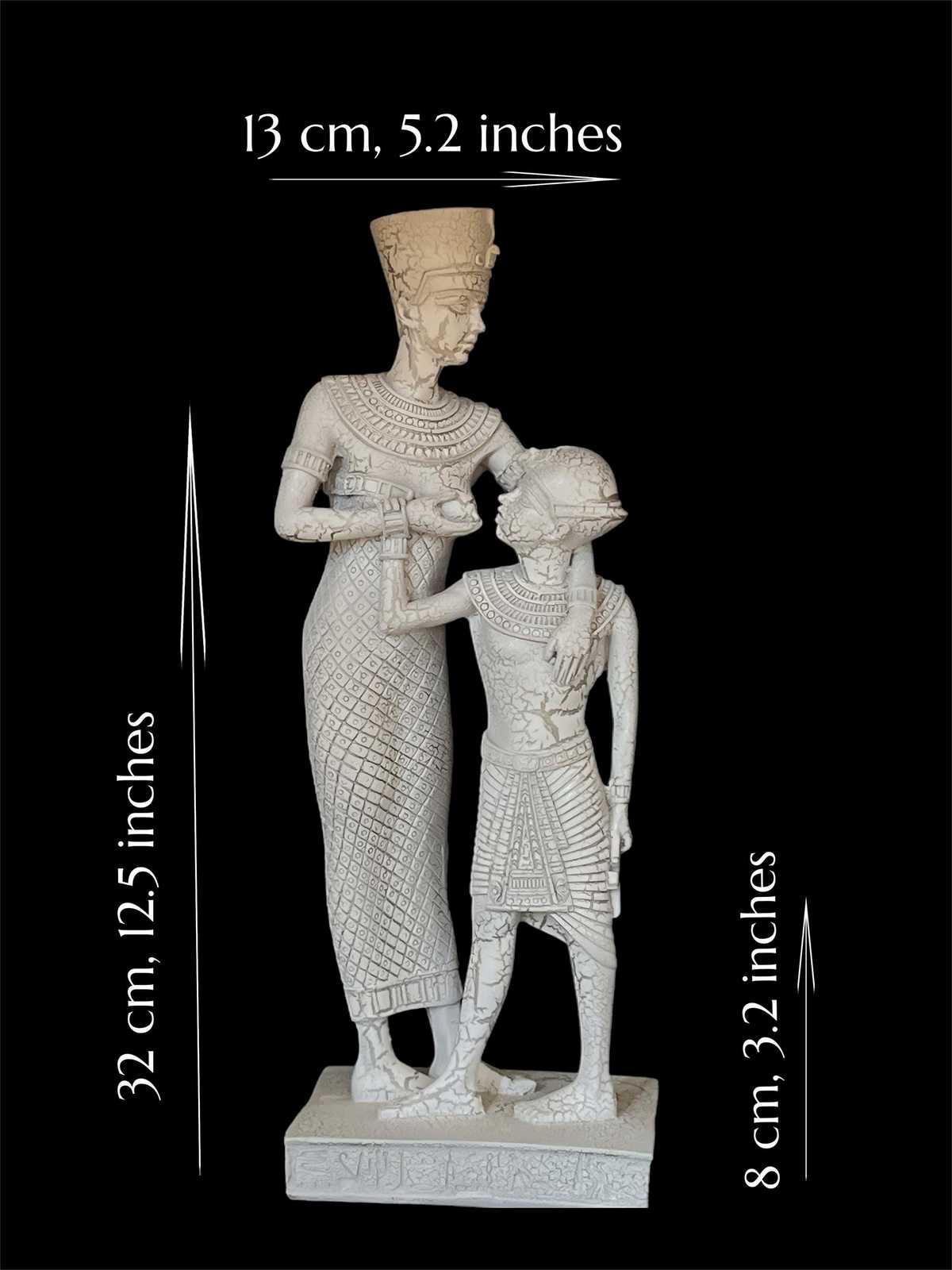 - **Exceptional Craftsmanship:** Each statue is meticulously carved from high-quality white marble, ensuring a stunning finish that highlights the exquisite details of Queen Nefertiti?s regal features and the tender bond with her child. The craftsmanship reflects the unparalleled beauty and sophistication characteristic of ancient Egyptian art.