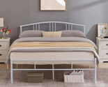 - White Metal Queen Platform Bed Frame With Arched Headboard