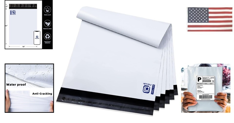 White Poly Mailers 10x13 100 Pcs, Strong Self-Seal, Waterproof and Tear-Resistant