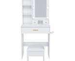 - White Vanity Table, LED Mirror, Power, Stool - Compact for Small Bedrooms