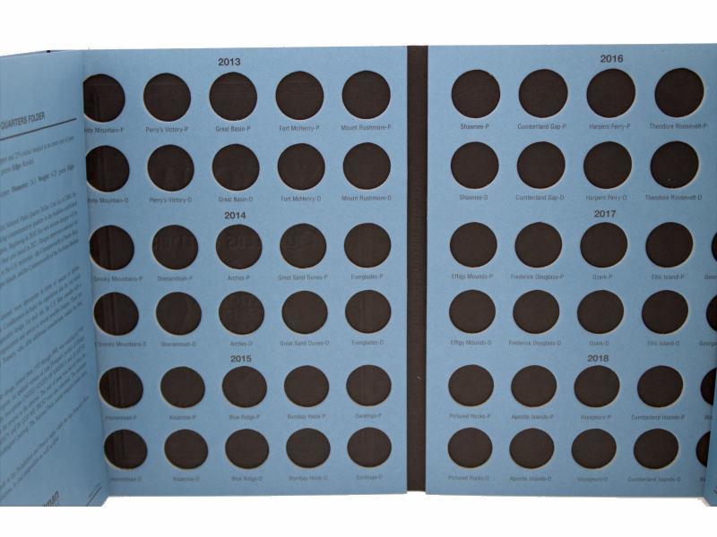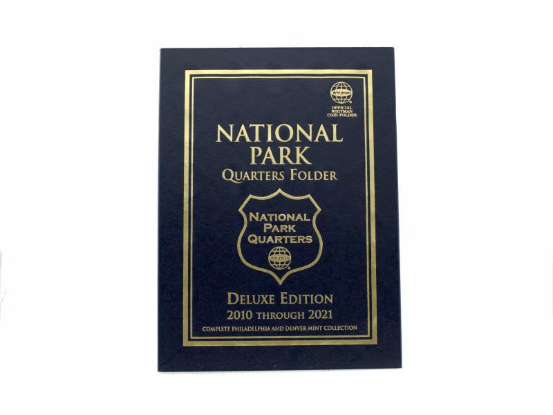 Whitman - Deluxe Edition: National Park Quarters Folder P D, 2010-2021, 120 openings, Holds all 50 States, the District of Columbia, and the U.S. Territories Single Mint Quarters. Easy to insert your coins, openings for all 112 P D National Park Quarters. Whitman Folders are built from the safest archival safe materials known. 7" x 9.5" closed.