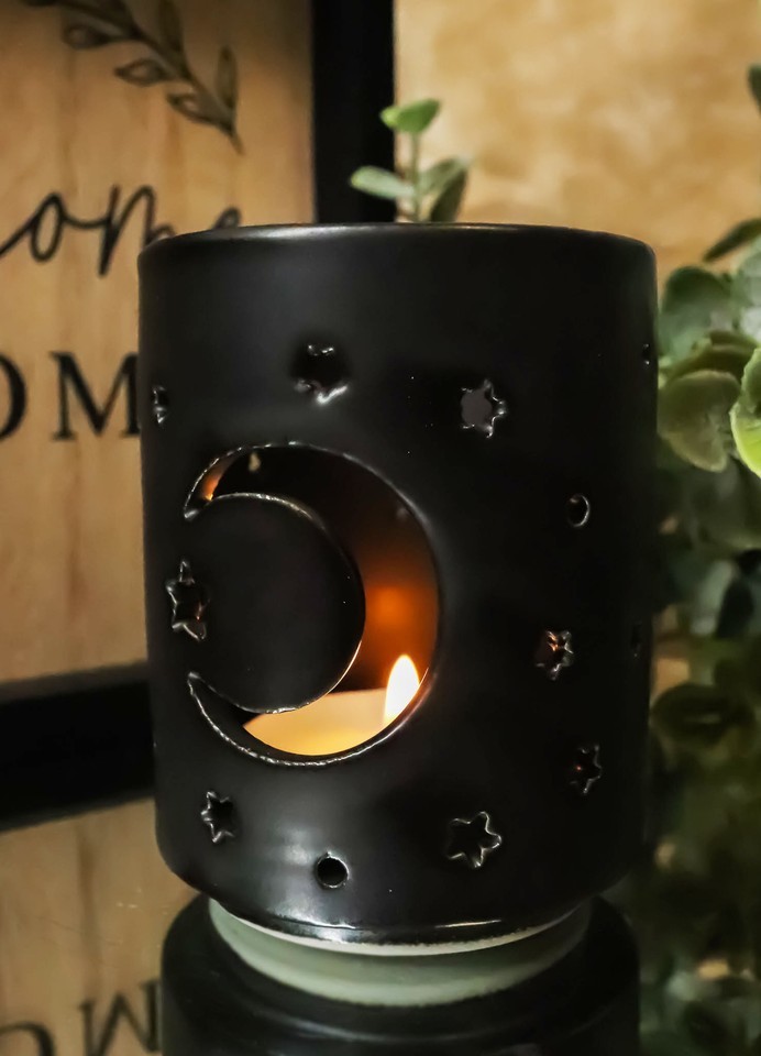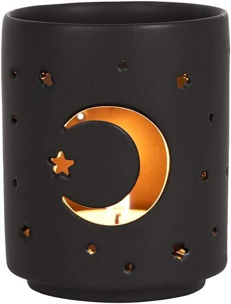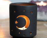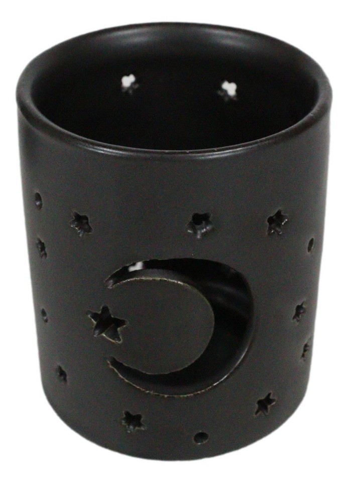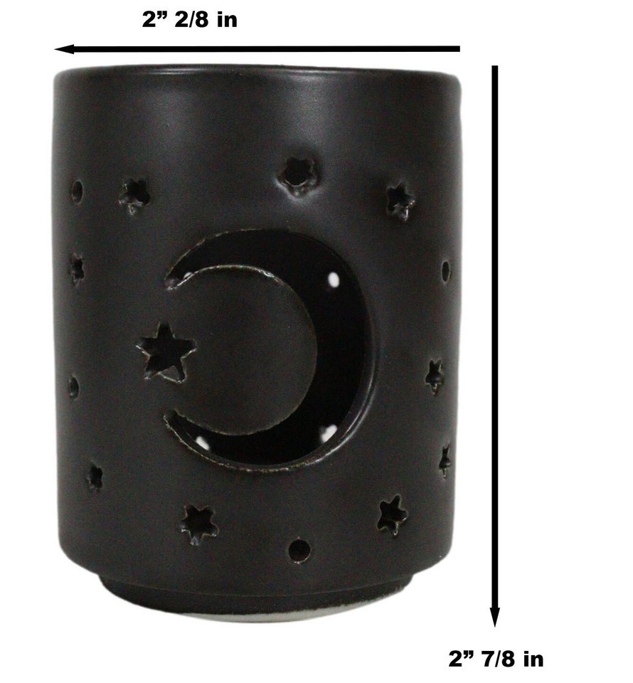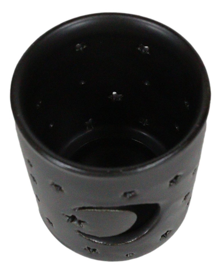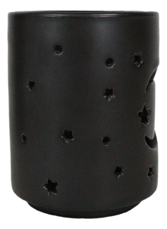 - Wicca Mystical Moon And Stars Cutout Ceramic Black T-Light Votive Candle Holder