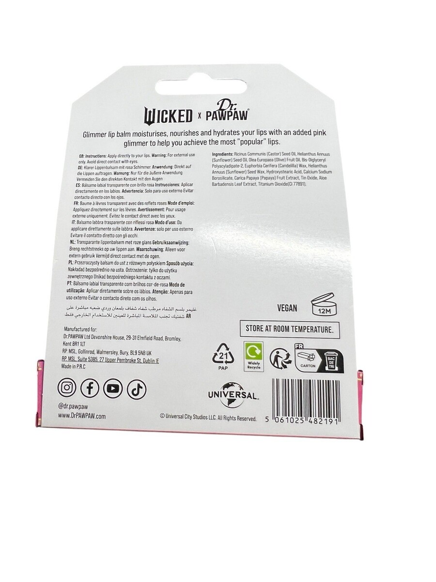 - Wicked x Dr. PawPaw GlimmerPink Shimmer Clear Lip Balm Glinda The Good Witch