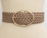 - Wide Oval Gold Buckle Vegan Leather Braided Belt Taupe