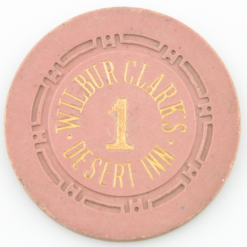 Primary image for Wilbur Clarks Desert Inn Casino Roulette Chip Las Vegas Table 1H Shape Lavend...