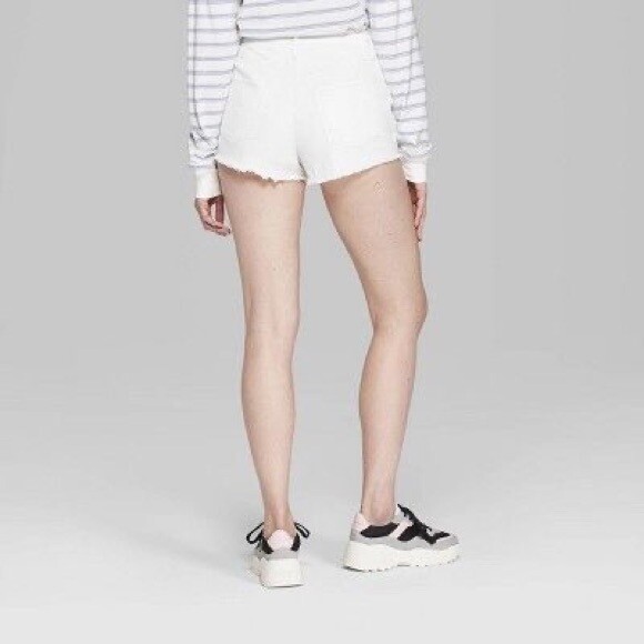 This sale is for one (1) pair of Wild Fable? brand shorts Women's Size 8 Measures approximately 30" around outside waistband Measures approximately 12" center of waistband to hem White in color Frayed hemline Five (5) pocket shorts 98% Cotton ~ 2% Spandex Machine wash ~ Tumble dry Shorts are new with tags Please view photos for a good description of this item Thank you!
