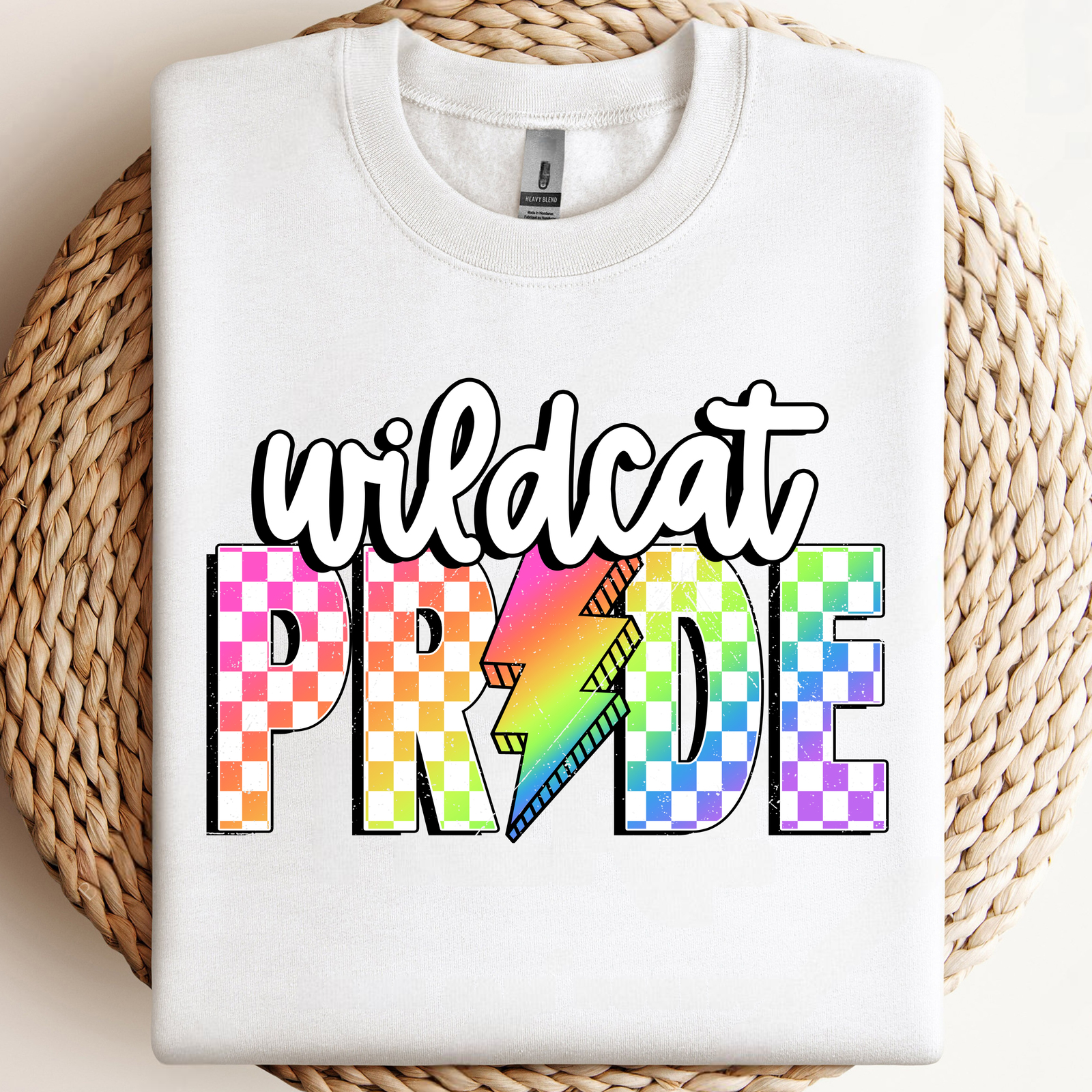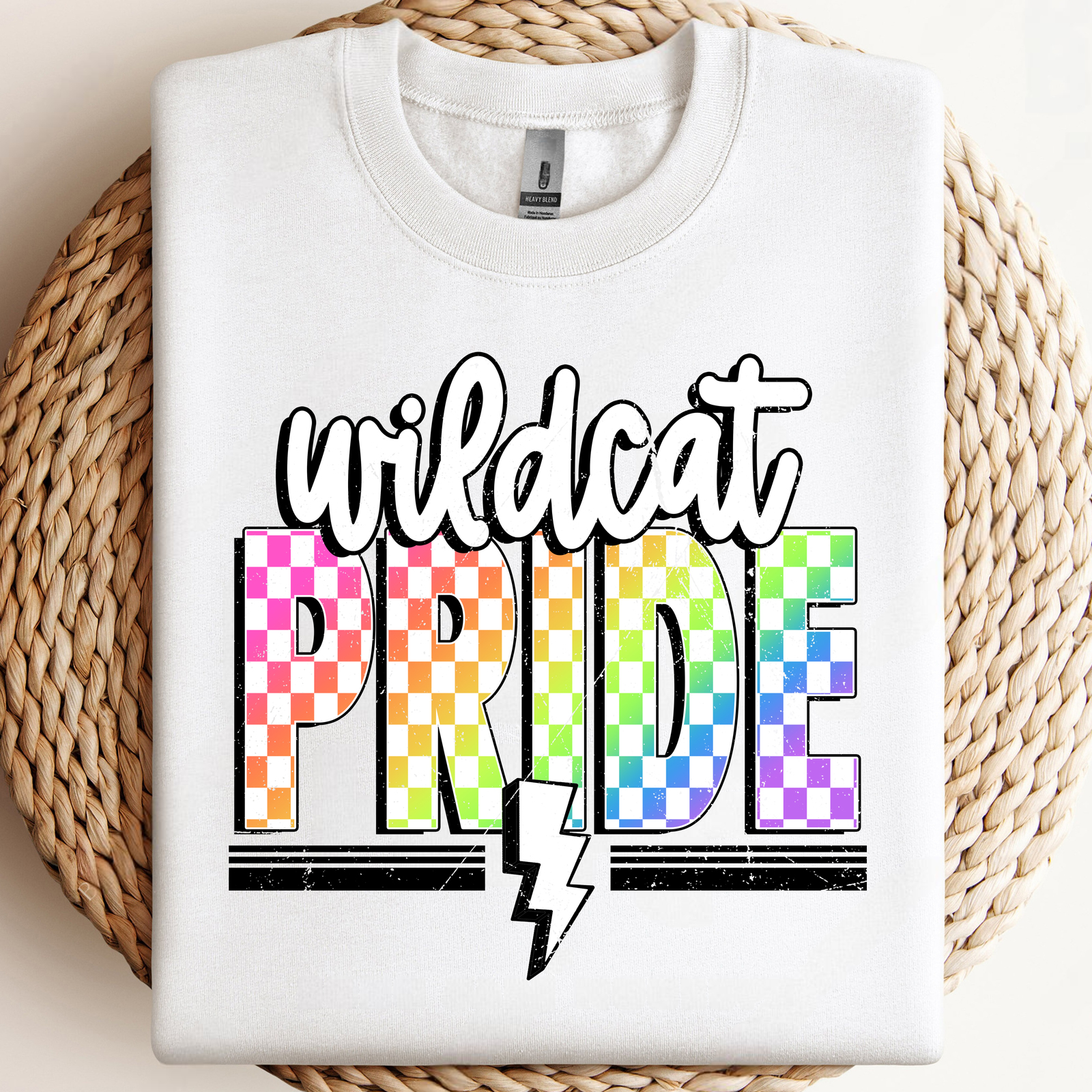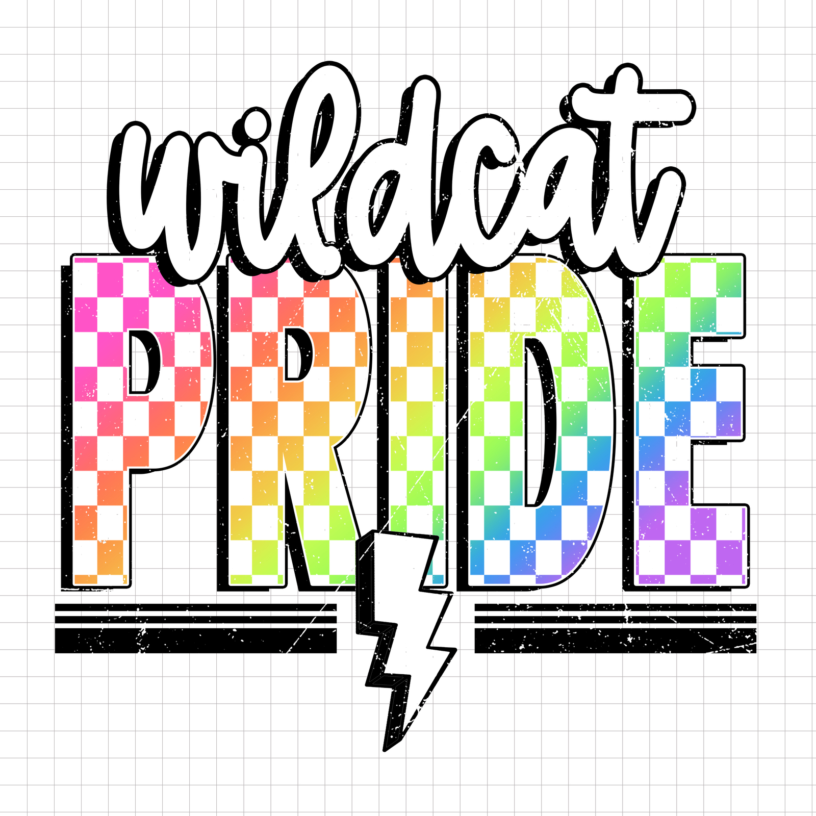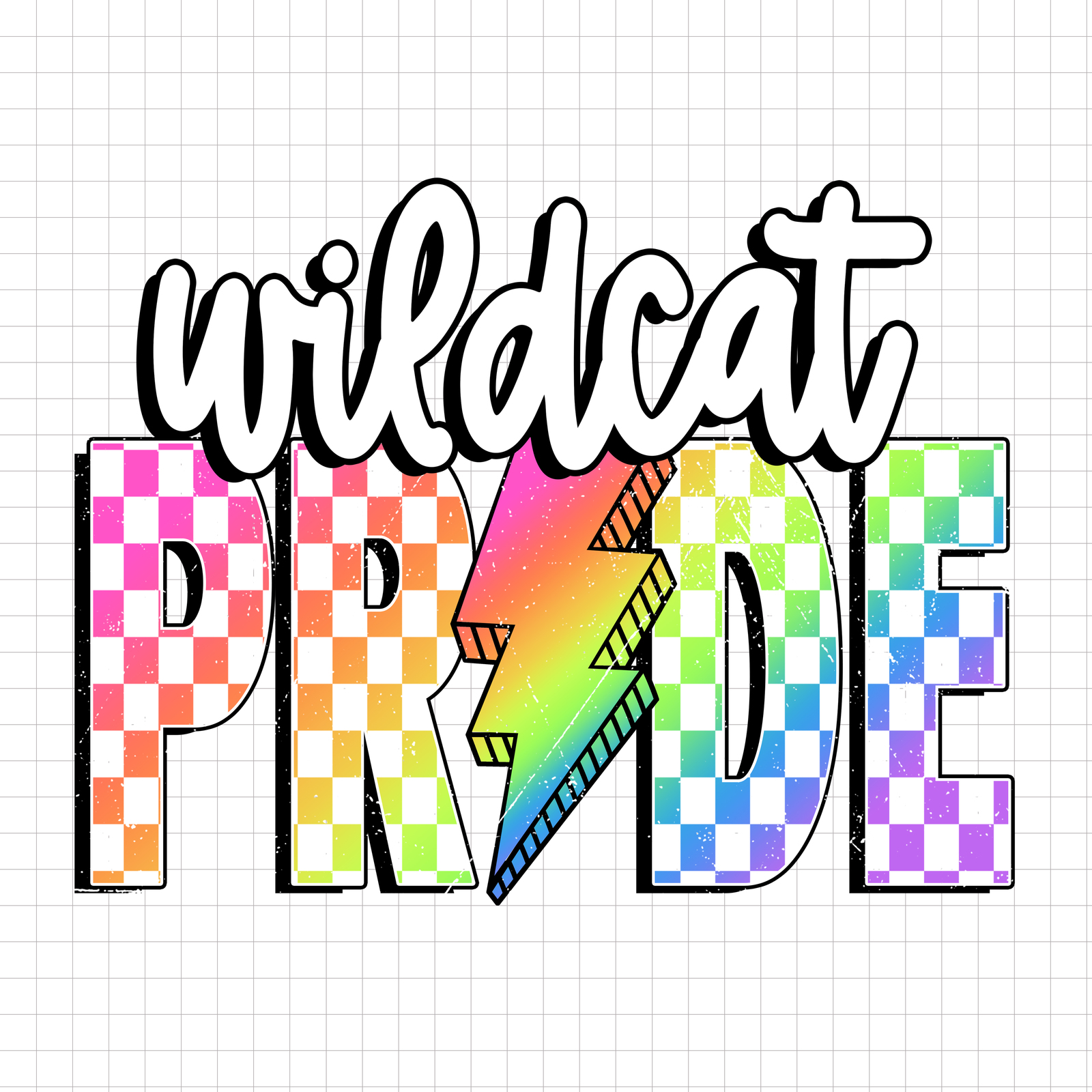 Wildcat Pride PNG, Checkered Wildcats PNG, Lightning Bolt PNG, Neon Mascot PNG