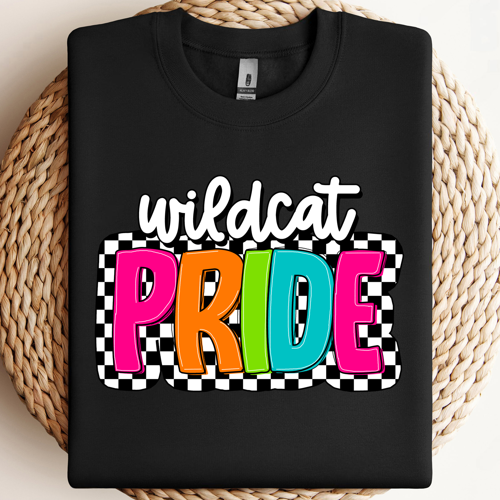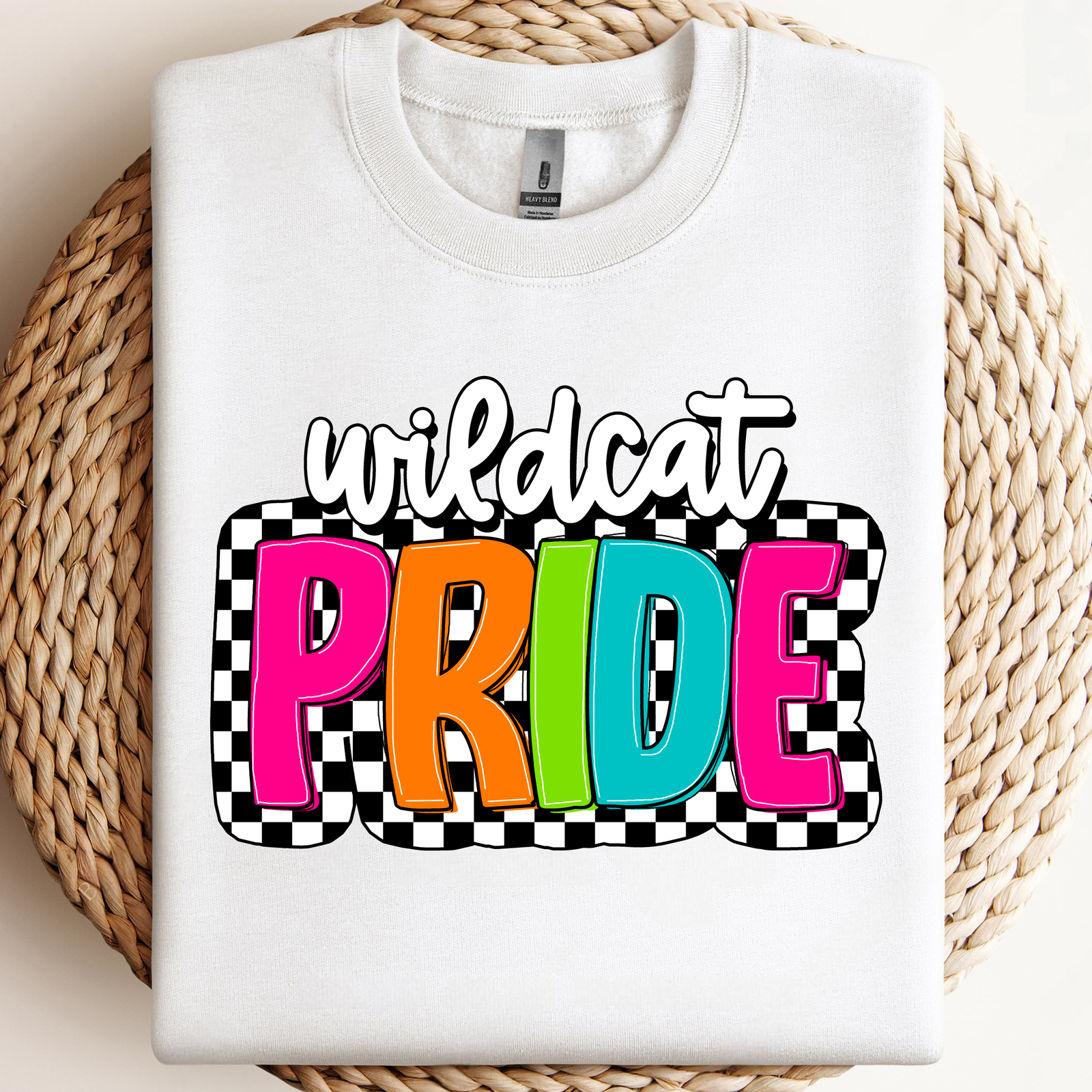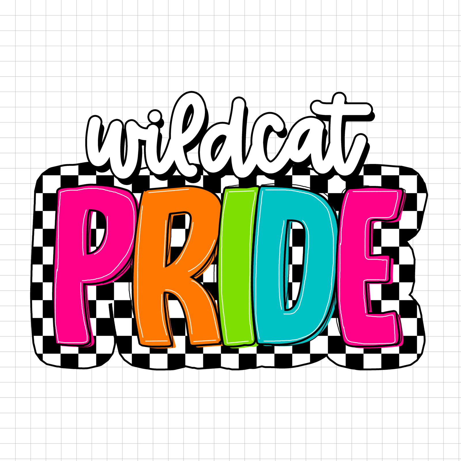 Wildcat Pride PNG Digital Download, Retro Checkerboard Mascot Design, School Spirit Shirt, Game Day Sublimation File, Team Pride Printable, Trending Design