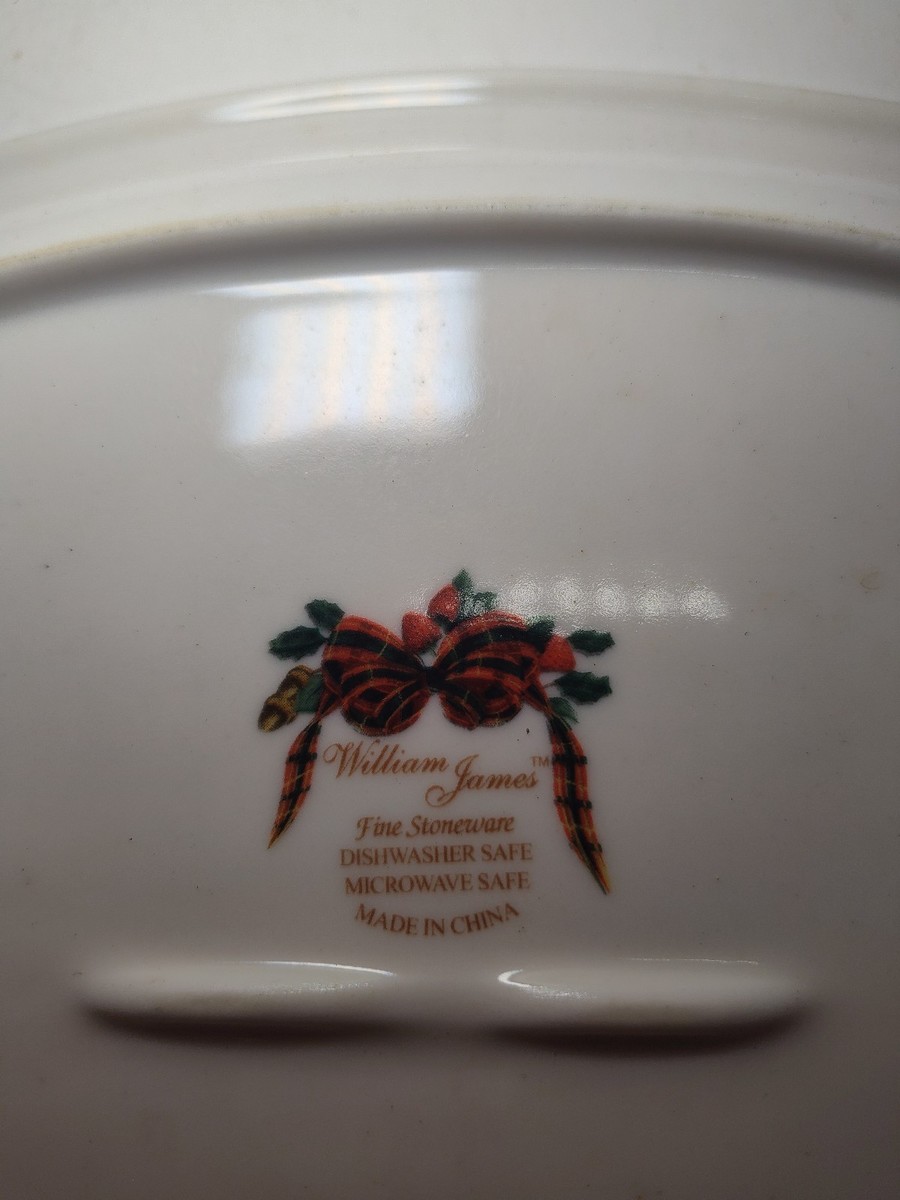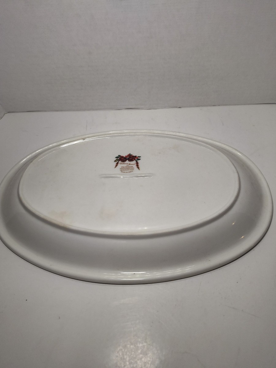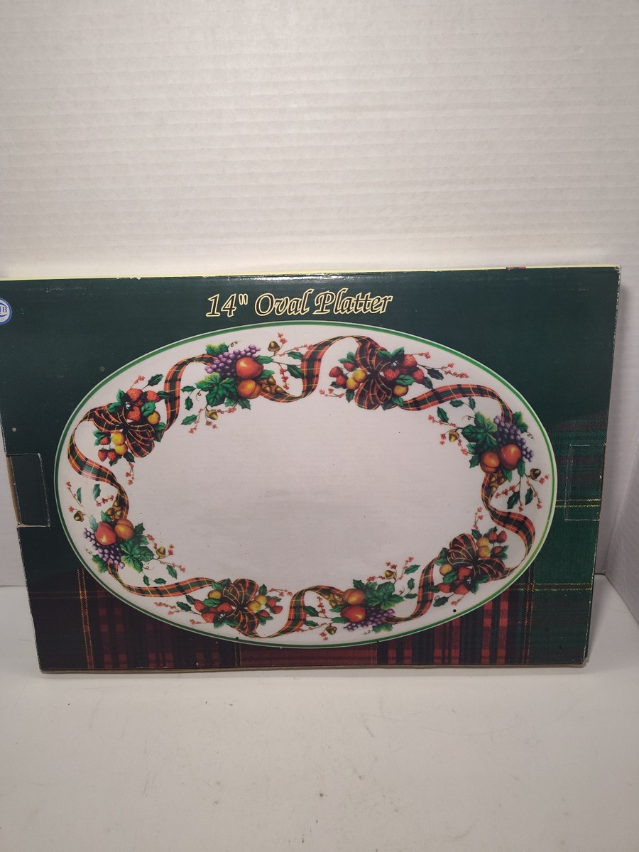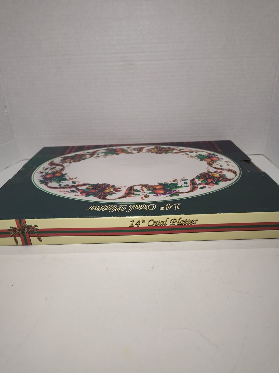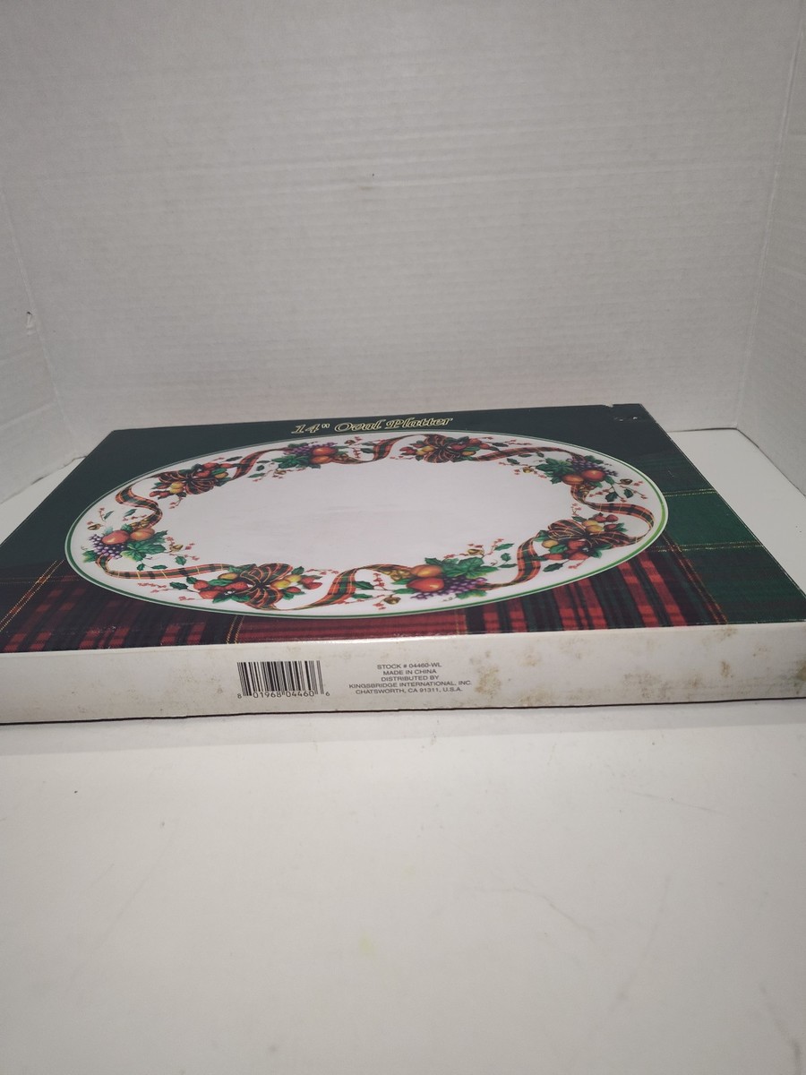 William James Stoneware Holiday Ribbon & Fruit 14” Serving Platter. New