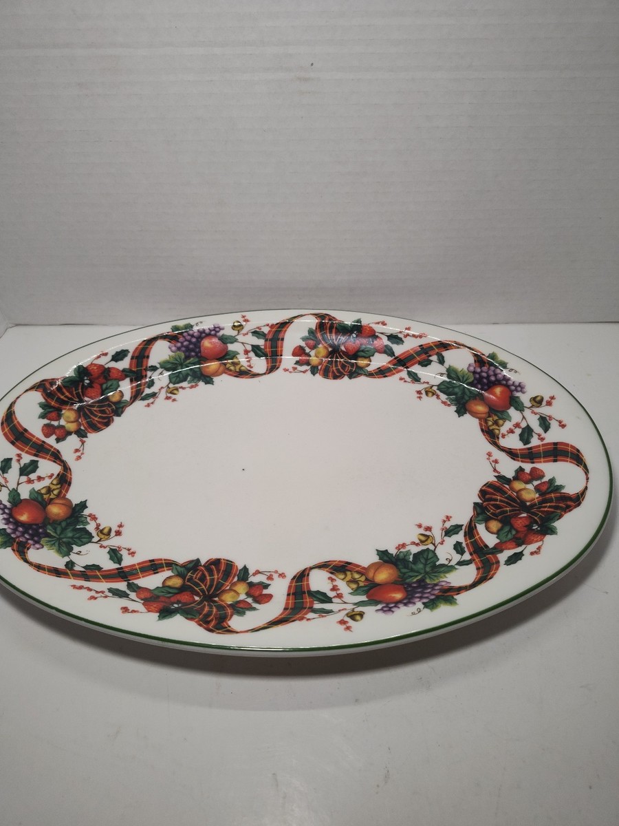 Primary image for William James Stoneware Holiday Ribbon & Fruit 14” Serving Platter. New