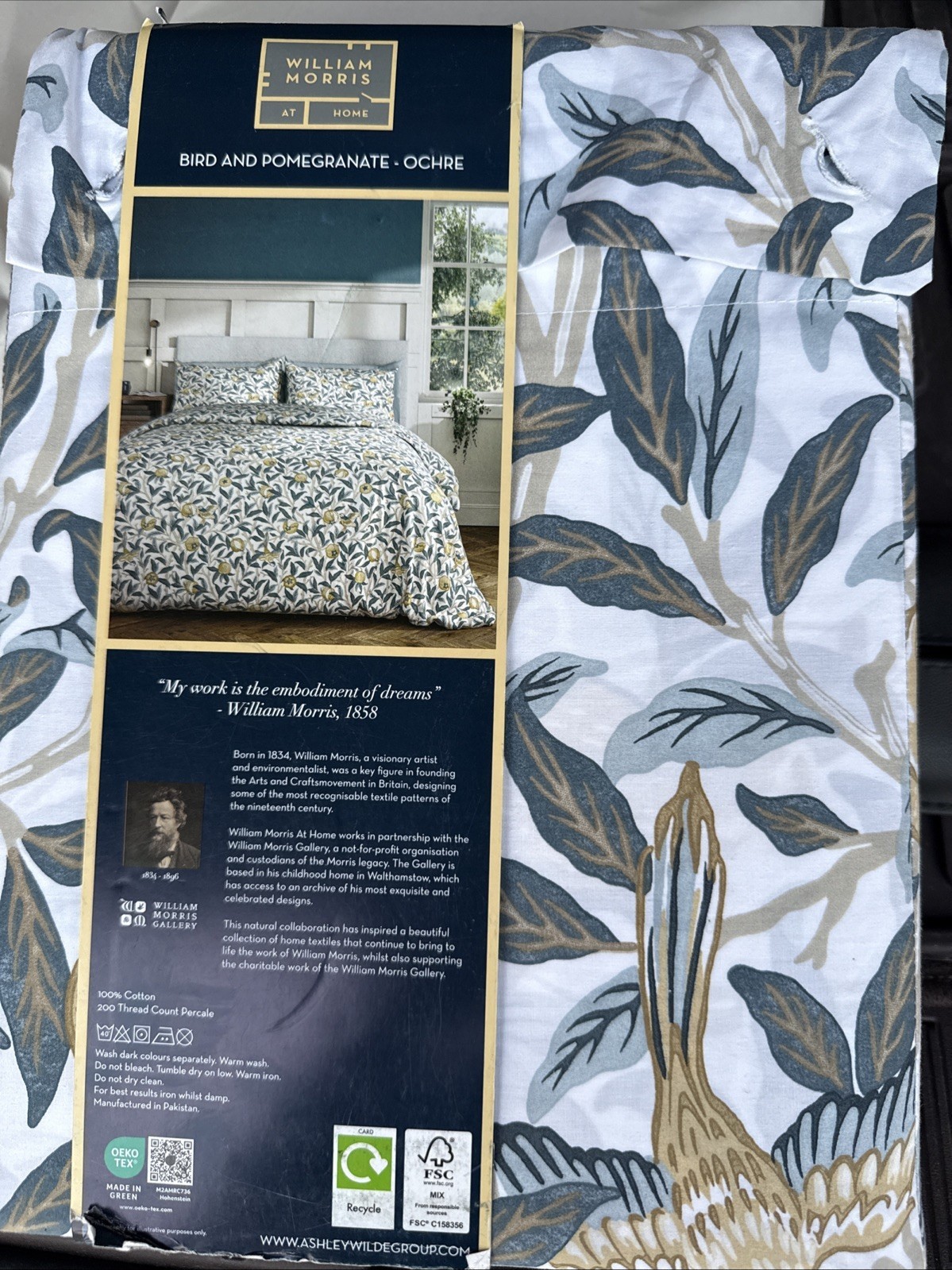 William Morris Bird & Pomegranate - Ochre King Duvet Set 3 ~New~