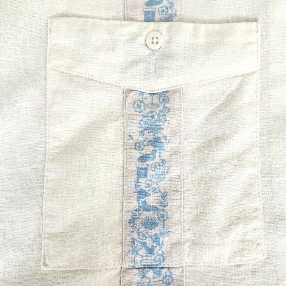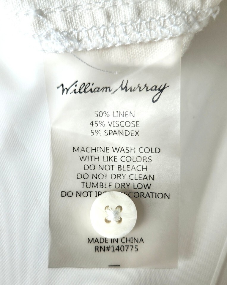 William Murray Shirt Mens XL White Linen Blend Embroidered Cuban Guayabera Golf
